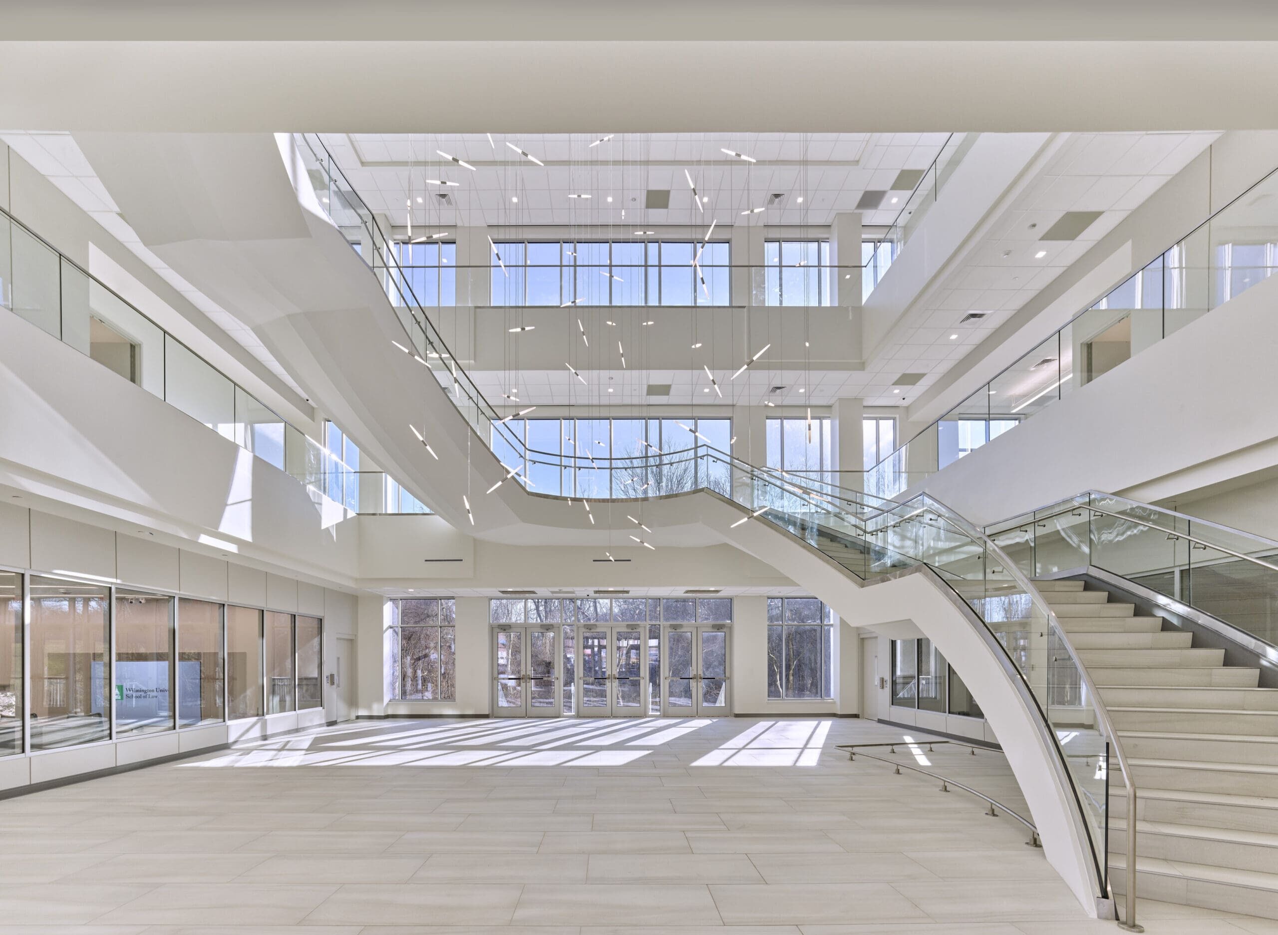 The launch of the School of Law is a significant expansion of Wilmington University’s (WilmU) graduate offerings. The School of Law is visioned with a unique and innovative program that addresses many of the challenges in legal education. As part of WilmU’s commitment to both traditional building design and modern education, AEI‘s design concept is anchored at each end with conventional elements, such as faculty offices and classrooms, while in the heart of the building, there will be a library, collaboration spaces, virtual meeting rooms, and small huddle spaces that will give the building a more contemporary feel.